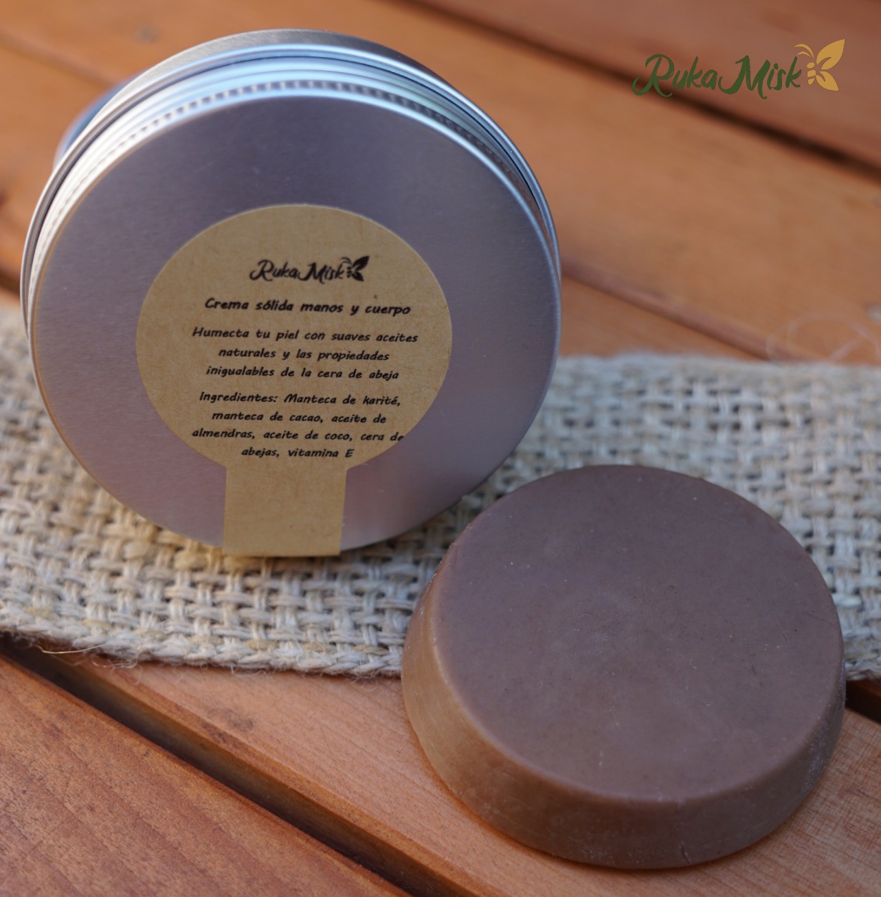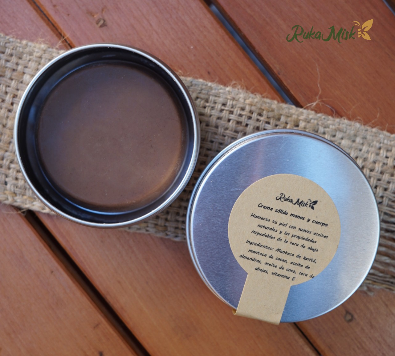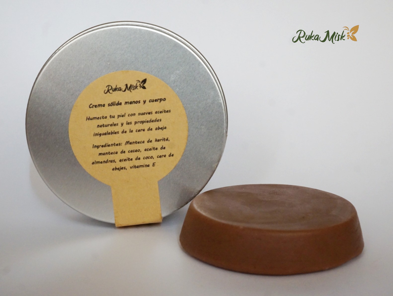 Formato sólido de gran duración, hecho 100% con mantecas y aceites naturales, sin siliconas ni derivados del petróleo. La crema sólida humectante se encuentra elaborada en base a cacao puro, con cera de abejas, manteca de karité, manteca de cacao, aceite de coco, aceite de almendras y vitamina E.
